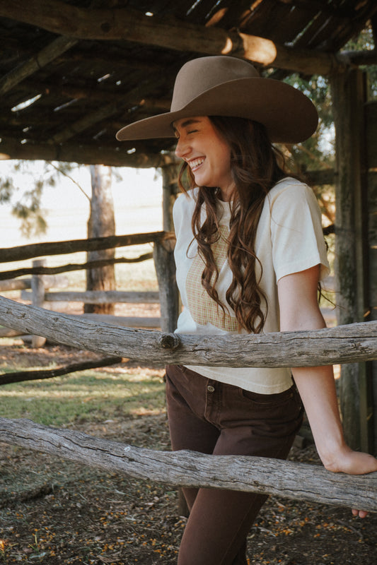Sold outBeige Boot Patchwork Tee - S