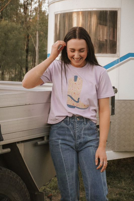 Lilac Boot Patchwork Tee - S