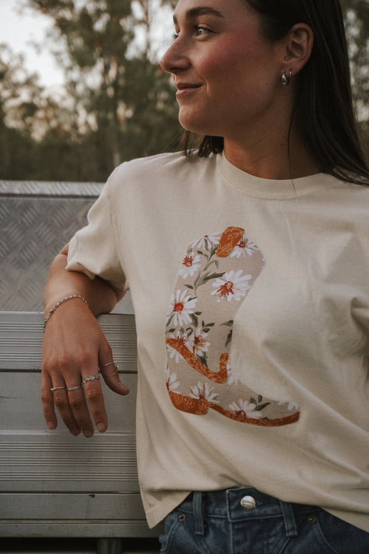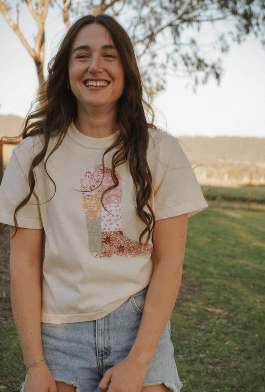 Beige Boot Patchwork Tee - S