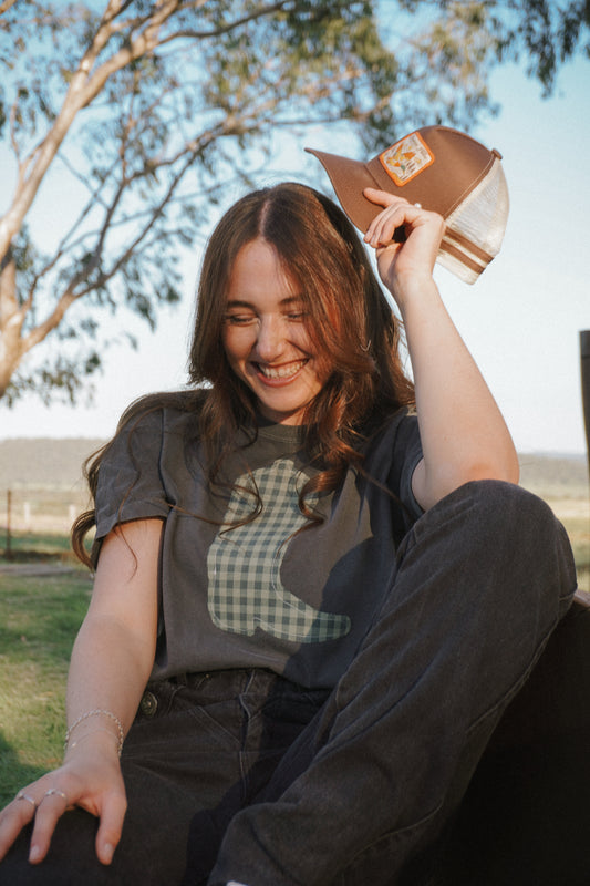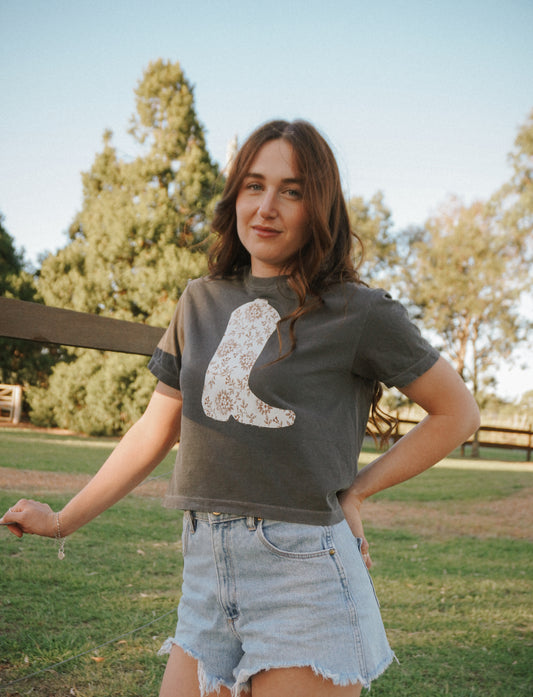 Sold outCharcoal Boot Patchwork Tee - M