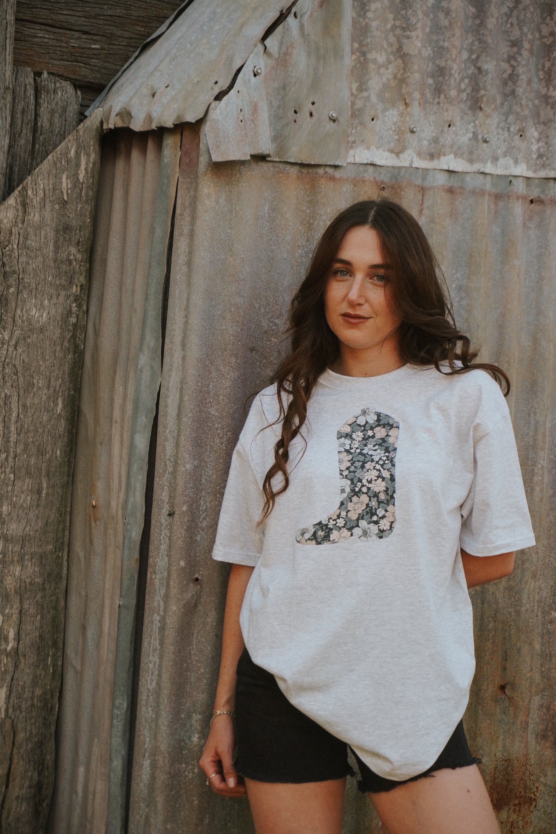 Grey Boot Patchwork Tee - L